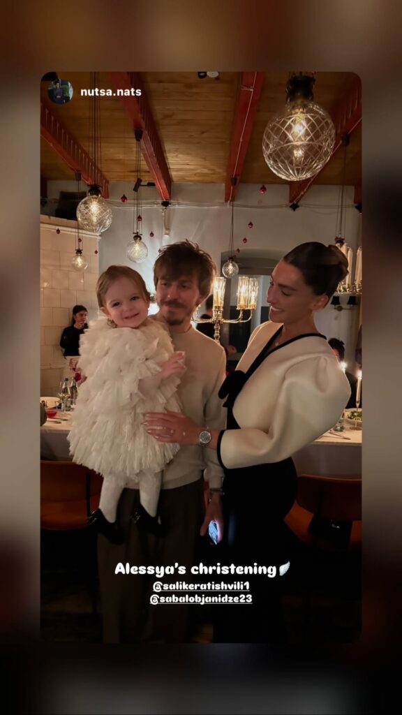 გოგონა თბილისის ვაკის მაცხოვრის ფერიცვალების სახელობის ტაძარში, დეკანოზმა შალვა კეკელიამ მონათლა. რიტუალის ამსახველი კადრები წყვილმა სოციალურ ქსელში გამოაქვეყნა.