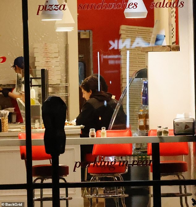 ვარსკვლავურმა წყვილმა პეპერონის პიცა და გაზიანი სასმელები მიირთვა. ამ დროის განმავლობაში ისინი ერთმანეთს თვალებში შესცქეროდნენ და ერთმანეთს უღიმოდნენ. ერთ მომენტში კართან ჩასაფრებულმა პაპარაცებმა მათი კოცნაც დააფიქსირეს.