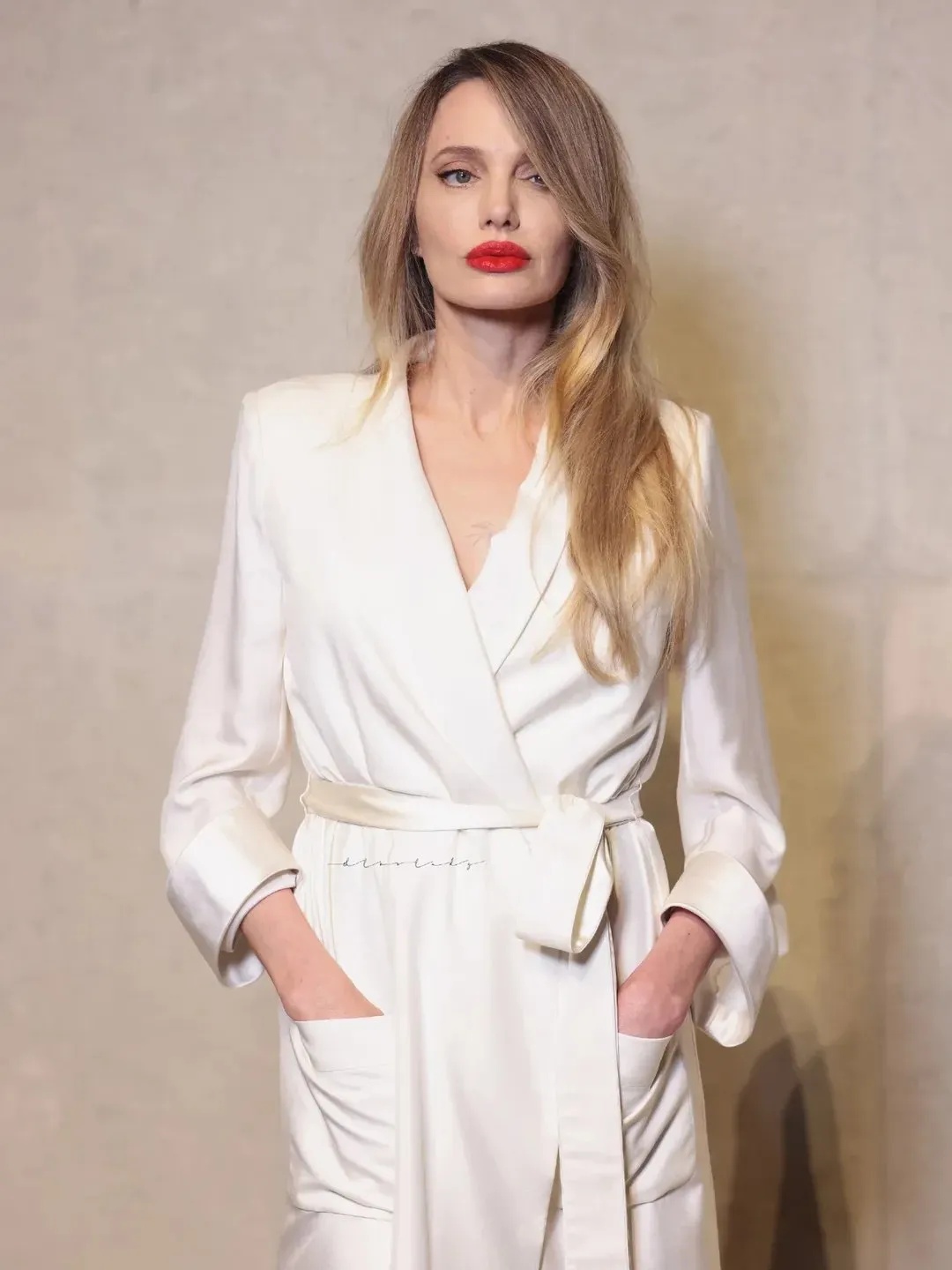 ვარსკვლავმა თეთრი თრენჩი მოირგო, „ლუქი“ კი წითელი პომადით გაამრავალფეროვნა. რაც მის კლასიკურ და დახვეწილ სტილს ახლებურად უსვამდა ხაზს.